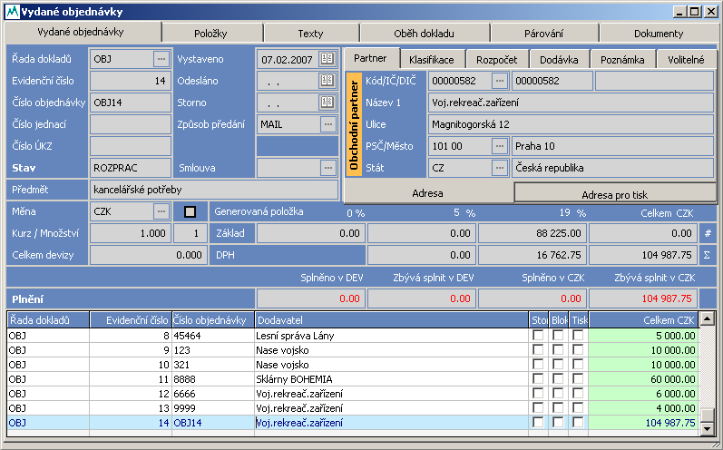 Modul Objednávky