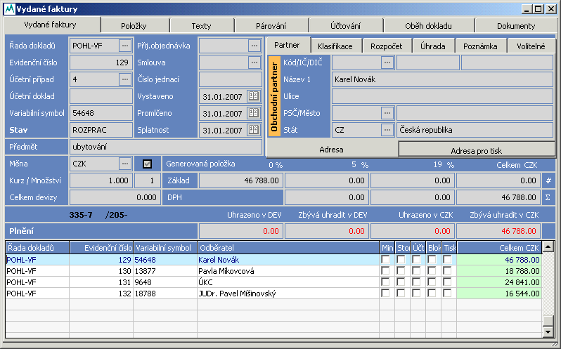 - Modul Pohledávky (faktury vydané)