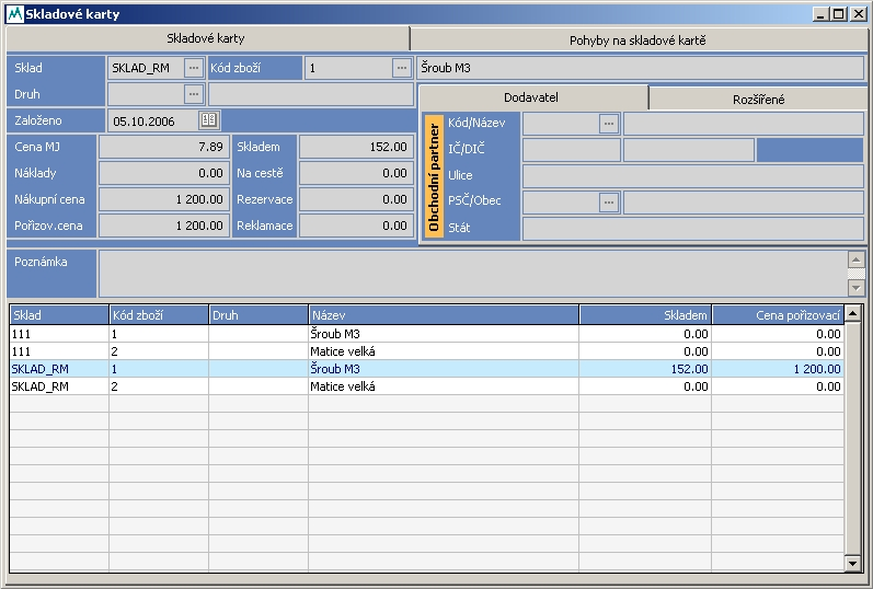 - Modul Skladové hospodářství