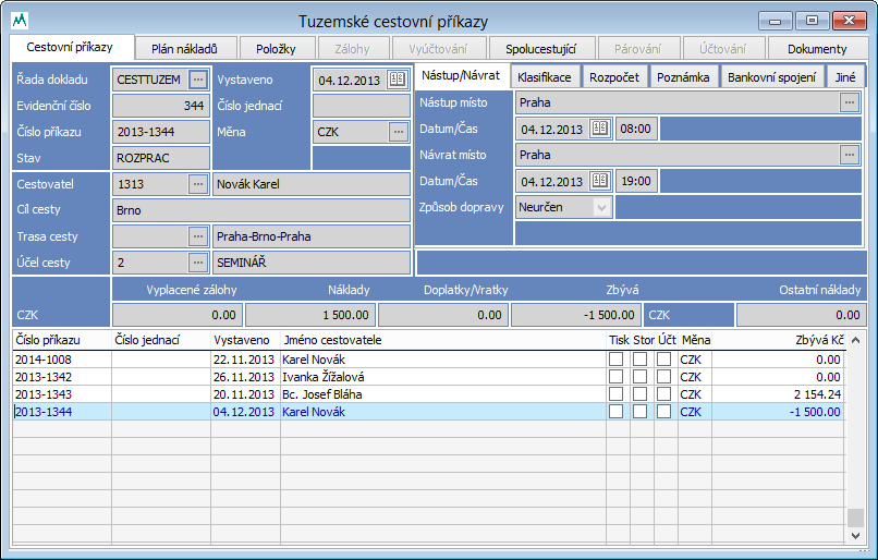 - Modul Cestovní příkazy