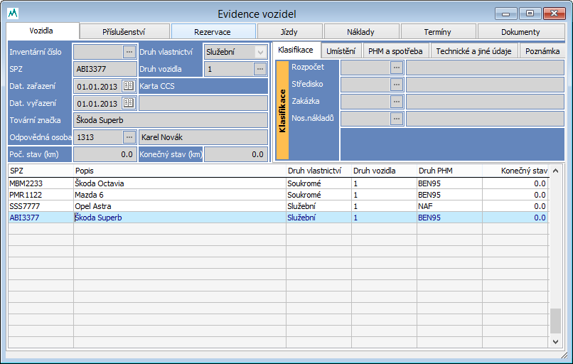 Evidence knihy jízd, vozidel, příslušenství, rezervace vozidel a nákladů na provoz jednotlivých vozidel. Přehledy nákladů, ujetých kilometrů a náhrad za jednotlivá i všechna vozidla celkem, přebírání nákladů importem dat z CCS, kalendář silniční daně (přehled záloh a skutečné daňové povinnosti), kalendář plánovaných akcí (STK, servisní prohlídky) atd.