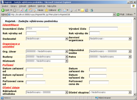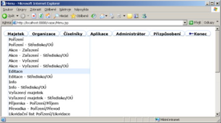 - centrální evidence veškerého majetku organizace s využitím komunikace po resortní síti;