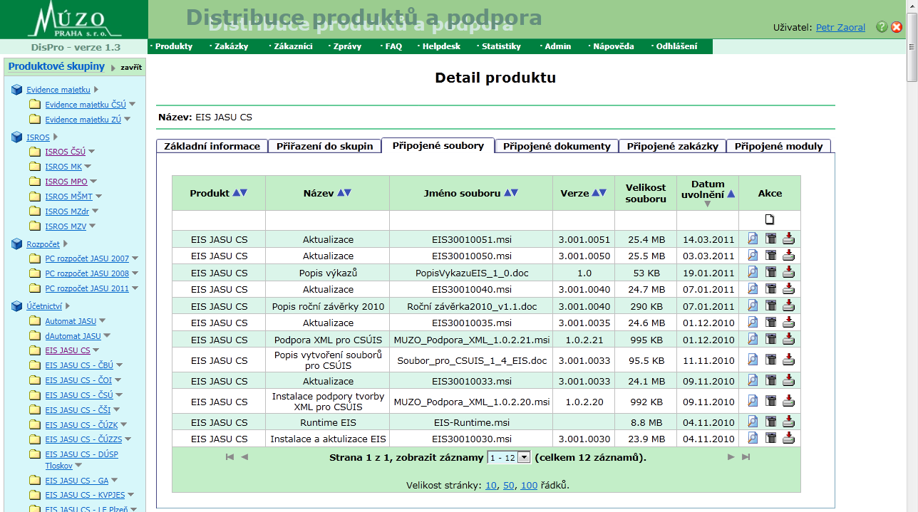 Internetová aplikace DisPro (dostupná na adrese http://support.muzo.cz) slouží k distribuci softwarových produktů. Pomocí této aplikace předáváme zákazníkům instalační soubory, aktualizace, opravy, dále pak příručky, manuály a další soubory.
